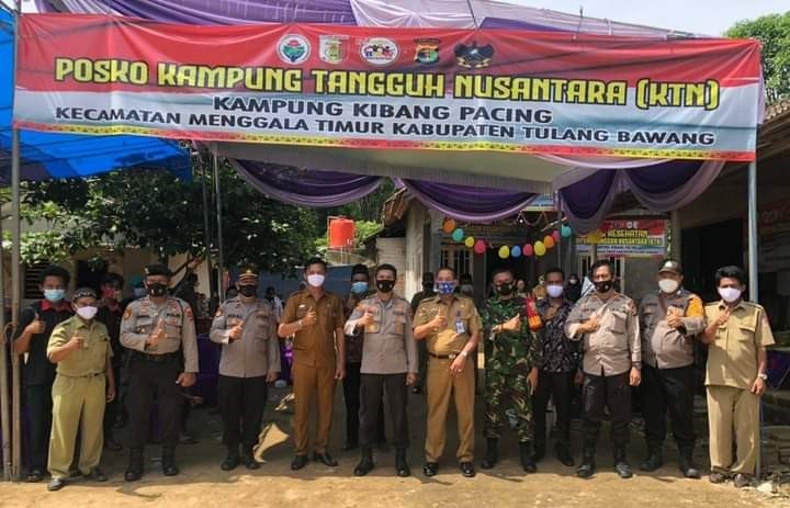 Kibangpacing - Gerakan Kampung Tangguh termasuk bagian langkah penanganan Covid-19 di Kabupaten Tulang Bawang, bertempat di Posko Utama Kampung Tangguh Nusantara Kibang Pacing RT002 RW 001 Dusun Pura Wati 1 Kec. Menggala Timur Kab. Tulang Bawang dilaksanakan kegiatan Lounching Kampung Tangguh Nusantara Covid-19 dalam rangka Program Desa Siaga Covid 19*. Selasa (16/03/2021)