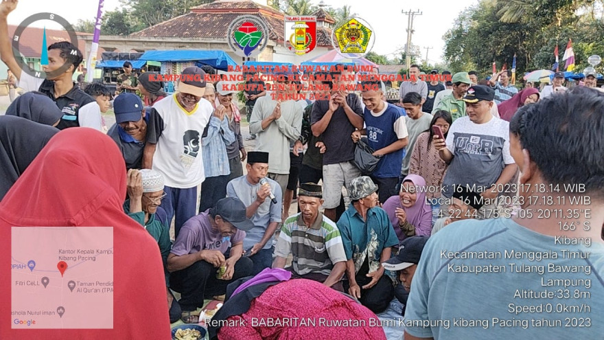Tulang Bawang- Dalam rangka ulang Tahun Kampung Kibang Pacing, Kecamatan Menggala Timur menggelar acara RUWAT BUMI dan wayang golek, Kamis (16/03/2023).