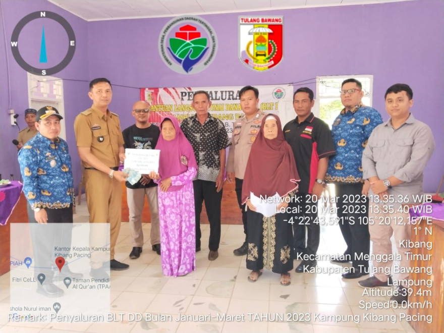 Pembagian BLT Dana Desa, berlangsung di Balai Kampung Kibang Pacing dihadiri Camat Menggala Timur Bpk Agus Wandi,SH.,MH, Kepala Kampung Kibang Pacing Inci Fachruriza,SH. Ketua BPK Bpk Muhadi, PD Bpk Harnawan Perangkat Kampung, Bhabinsa Bpk EKO WINARDI, Babinkamtibmas Bpk. Brigpol Agus Setiawan.