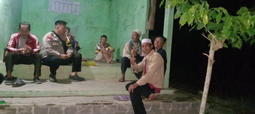 Kepala Kampung Kibang Pacing dan Bhabinkamtibmas Kampung Kibang Pacing , Kecamatan Menggala Timur, Tulangbawang, saat menyambangi warga yang sedang melakukan Ronda Malam, Senin (27/03/2023).