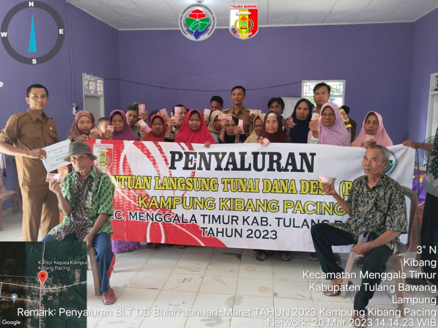 Pemerintah Kampung Kibang Pacing salurkan Bantuan Langsung Tunai Dana Desa Tahap 1 Periode Bulan Januari s/d Maret sejumlah Rp. 900.000/KPM kepada 26 Keluarga Penerima Manfaat bertempat di Balai Kampung Kibang Pacing. Senin (20/03/2023)